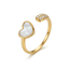 Sutil, brillante y ajustable. El anillo Rose  combina un pequeño corazón con un extremo ligeramente ensanchado decorado con circonitas cúbicas. Su diseño abierto se adapta comodamente al dedo, aportando un detalle femenino con luz propia.